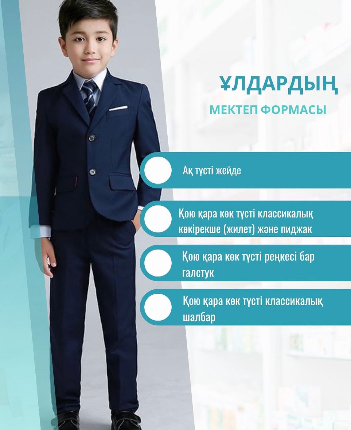 Жаңа 2025-2026 оқу жылына арналған мектеп формасына қойылатын талаптарды ұсынамыз: